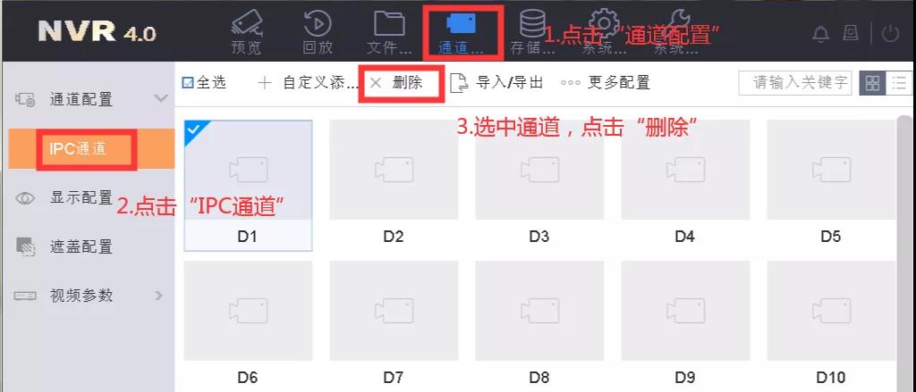 1. 主菜单—通道管理中删除通道管理中未添加成功的摄像机。