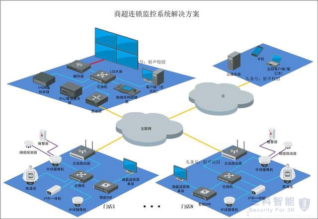 商超是人们日常生活中最常接触的环境,这里不仅人流较大,且范围分布广泛,在这种极易发生盗窃事故和购物纠纷等事件的环境中,普通视频监控系统显然已经不能满足要求,新型商超连锁视频监控系统的诞生让商超连锁变得更高效、更智能、更安全。同时,伴随着大数据技术的应用,监控系统的作用不仅仅是安全防范,更能够为商超企业提供宝贵的商业分析数据。